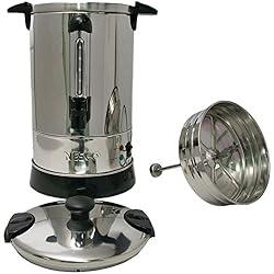 The NESCO Coffee Urn is constructed of stainless steel and features double wall insulation, allowing it to retain heat longer than single wall models. Its hefty capacity can hold up to 30-5.7 oz cups. Approximate brewing time is one cup per minute. Green indicator light lets you know when coffee is ready to be served. With locking lid and stay-cool handles to help prevent mishaps, this urn is truly a crowd pleaser.