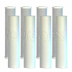 4 of Block Activated Carbon filters - 20" Big Blue Block Activated Carbon filters are similar in their performance to that of GAC filters, being made of fine coconut shell carbon they also do remove odors and tastes of many organic compounds, chlorine especially. Though, because this filters are made of a packed carbon (forming a cylinder block), they offer a much finer filtration of suspended particles and dirt. 4 of 20" Big Blue Sediment filter is often the first filter installed in the Whole House Water Filter. Sediment filters are made of fine melted polypropylene, which is then blown and spun in a cylinder-like form. The main function of a sediment filter is to remove large and fine particles from a drinking water, such as sand, dirt, silt, and rust particles. Removal of such particles allows for a better performance of all the following filters, such as Carbon Block or GAC filters. Those filters are fit all 20" Big Blue Water Filter Housings. • Product Highlights - Flow rate: 5 GPM - Filter life: 10,000 gallons - Operating Temperature: 39°F~125°F (4°C~52°C) - Max. Operating Pressure: 60 psi - Removes dust, particles, and rust - Good for water filters and aquariums. • Applications - Food and beverages - Reverse Osmosis Pre filtration - Oil and gas - Fine chemicals - Electronics - Metal finishing - Pulp and paper Micron rating: 5 Micron. Dimensions: 20†x 4.5â€
